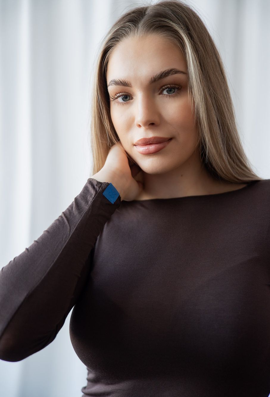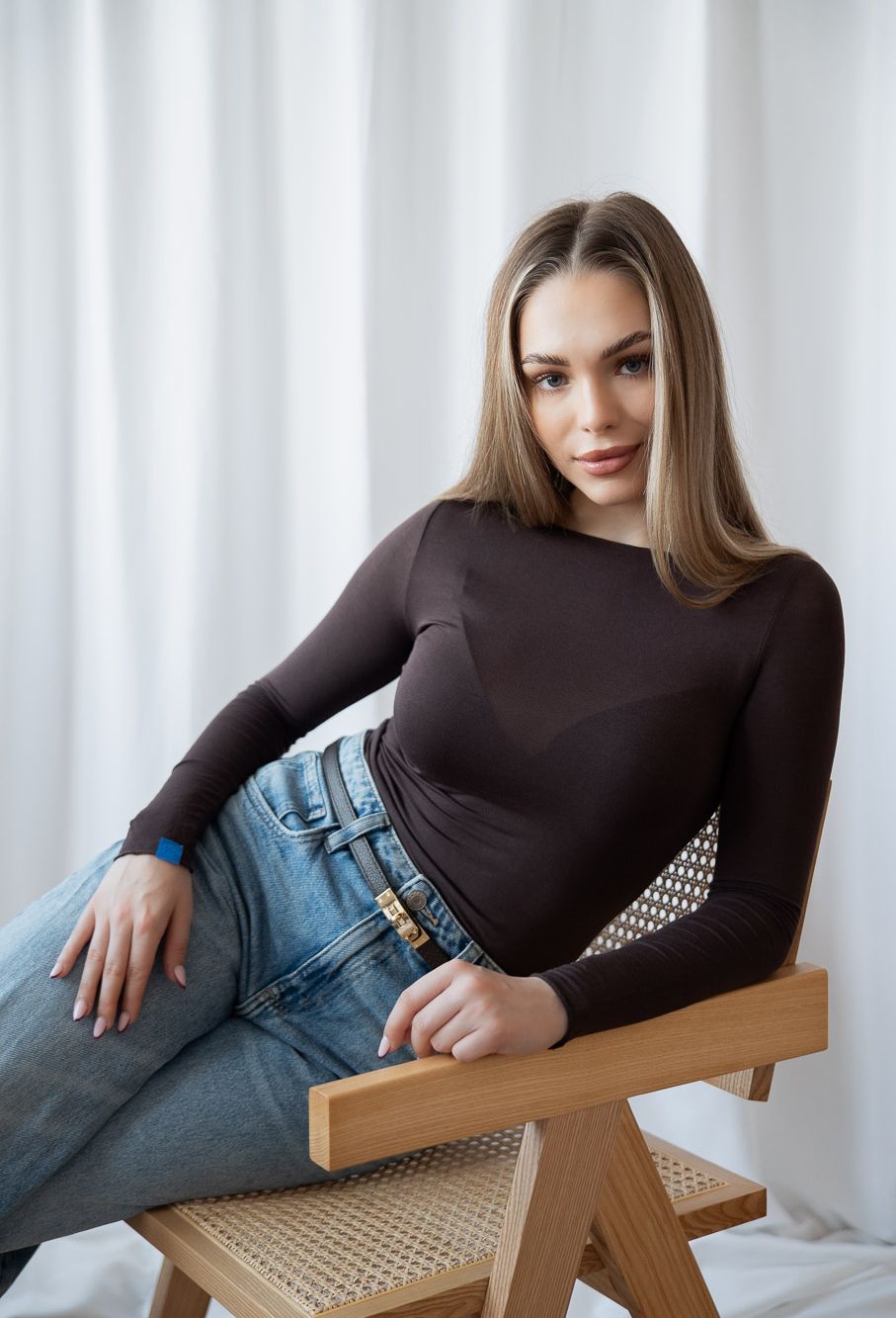 Minimalistický dizajn dopĺňa jemný podpis značky Studió – malé logo umiestnené na rukáve ako subtílny detail. Rukávy sú dlhé a elegantne priliehajú k ruke, čo dodáva tričku čistú a sofistikovanú líniu.