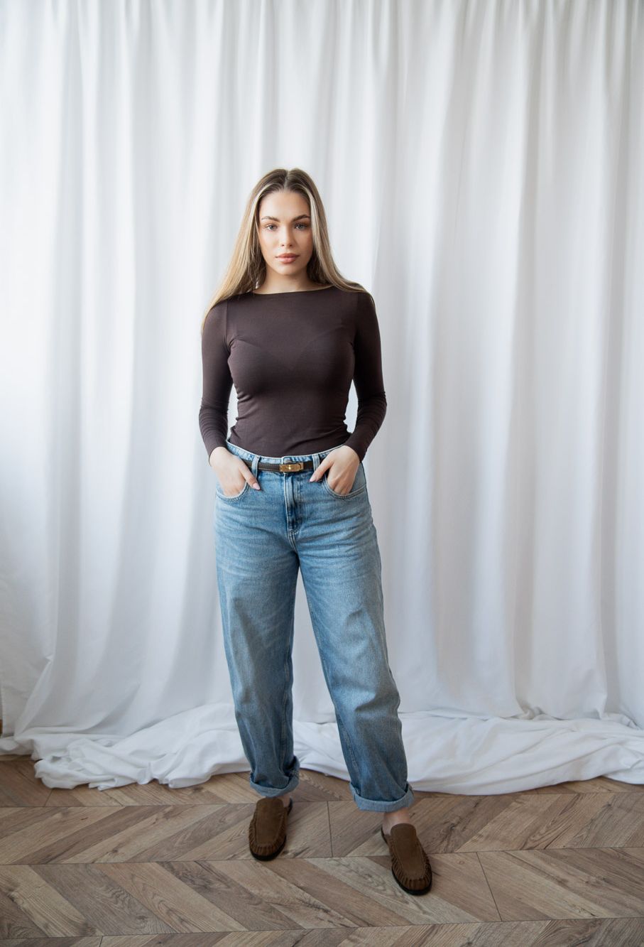 Dámske tričko s dlhým rukávom "Basics" chocolate