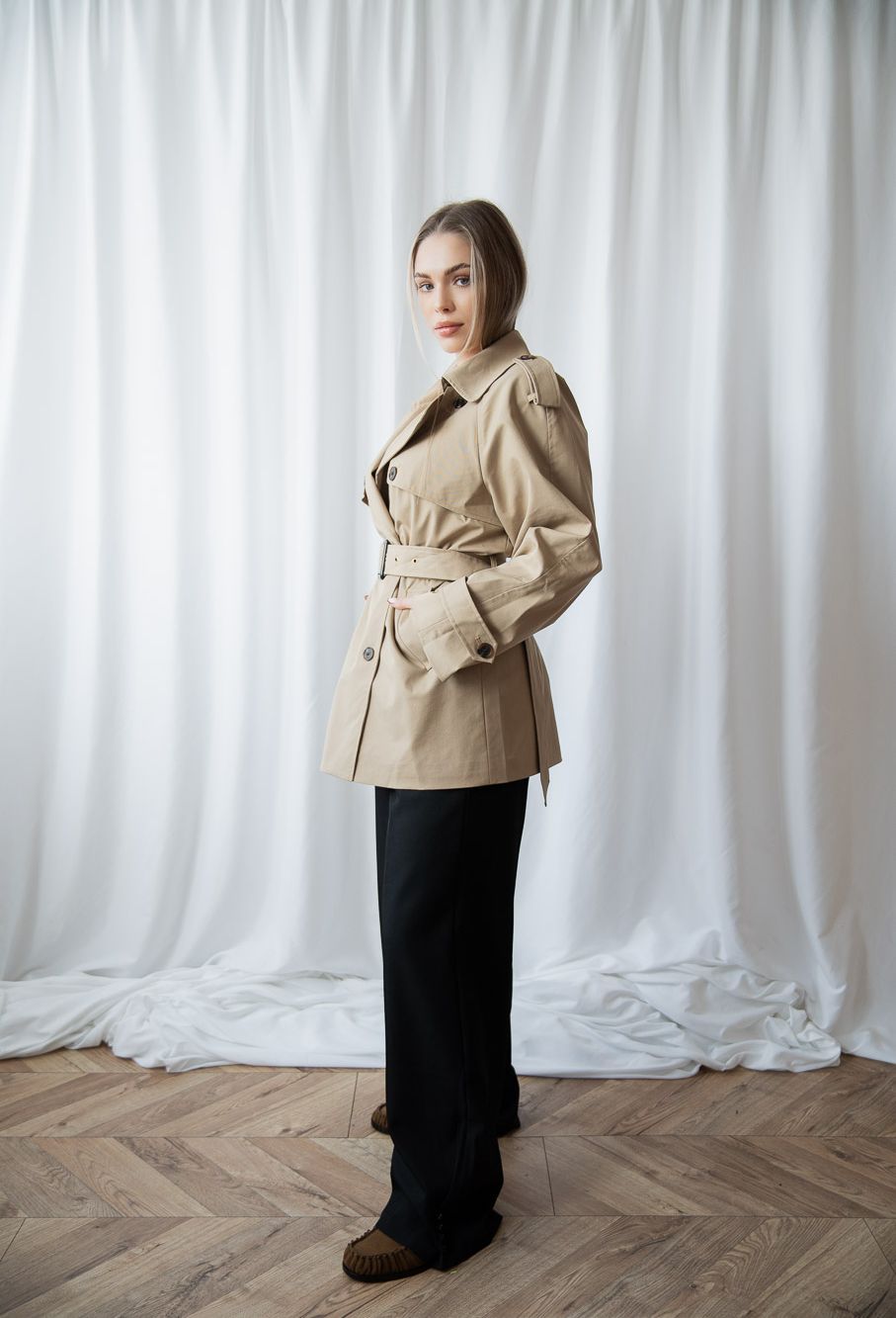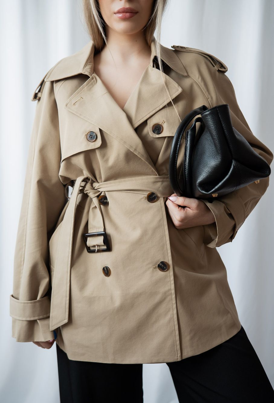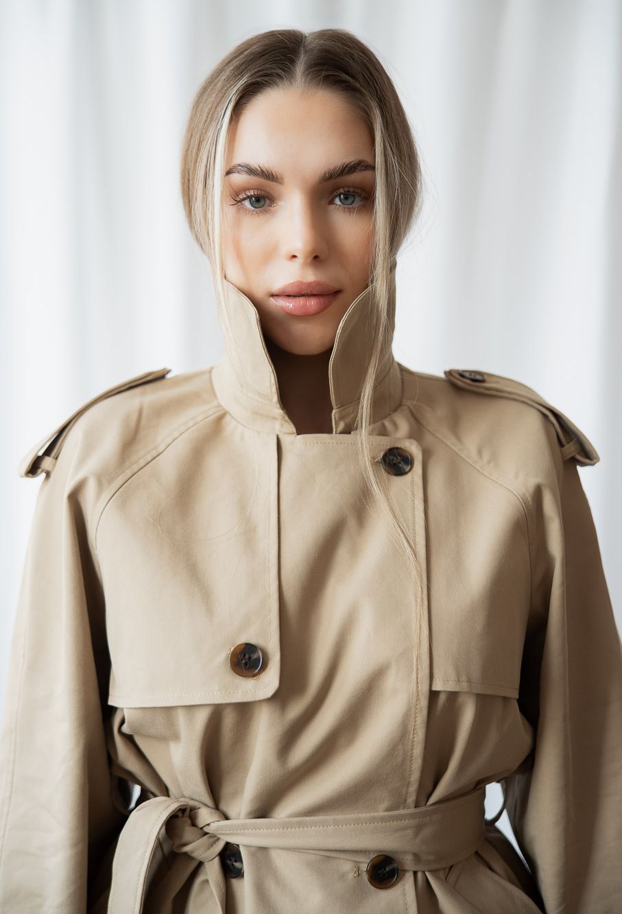 Silnou stránkou modelu je jeho masívnejší architektonický strih, ktorý vytvára krásne definovanú siluetu a dodáva kabátu moderný charakter. Charakteristickým prvkom je viazací opasok, ktorý umožňuje trenchcoat nosiť voľne otvorený alebo zvýrazniť pás a vytvoriť ženskú líniu. Elegantná béžová farba patrí medzi najuniverzálnejšie odtiene v šatníku – ľahko sa kombinuje s denimom, elegantnými nohavicami aj minimalistickými outfitmi. Práve preto je béžový trenchcoat považovaný za jeden z najnadčasovejších kúskov v kategórii dámske kabáty a trench coat kabáty.