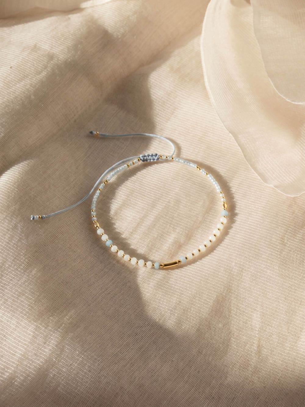 Posuvný náramok na nastaviteľnej šnúrke sa pohodlne prispôsobí každému zápästiu. Je ľahký, príjemný na nosenie a ideálny ako elegantný doplnok k outfitu, moderný handmade šperk alebo darček pre ženu so zmyslom pre detail. Tento náramok sme navrhli v spolupráci s handmade dizajnérkou, aby vznikol výnimočný a originálny kúsok s jedinečným charakterom, ktorý nenájdete bežne v masovej produkcii.